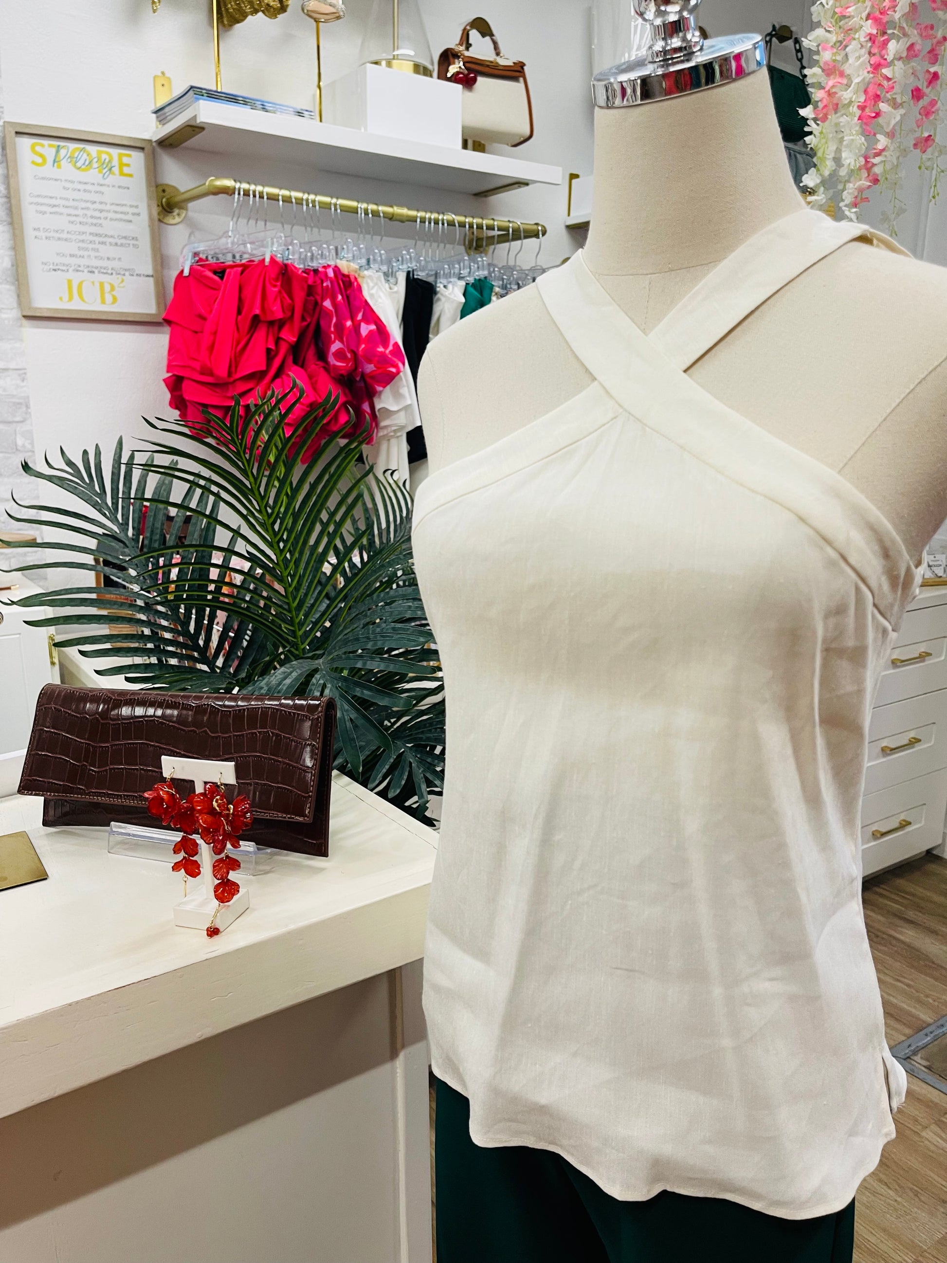 Experience comfort and style with the AM Olivia Top, crafted from soft, stretch cotton that moves with you. Its halter design beautifully highlights your shoulders, making it perfect for warm days or layered looks. This versatile top combines flattering fit and breathable fabric to keep you feeling confident and comfortable all day long.