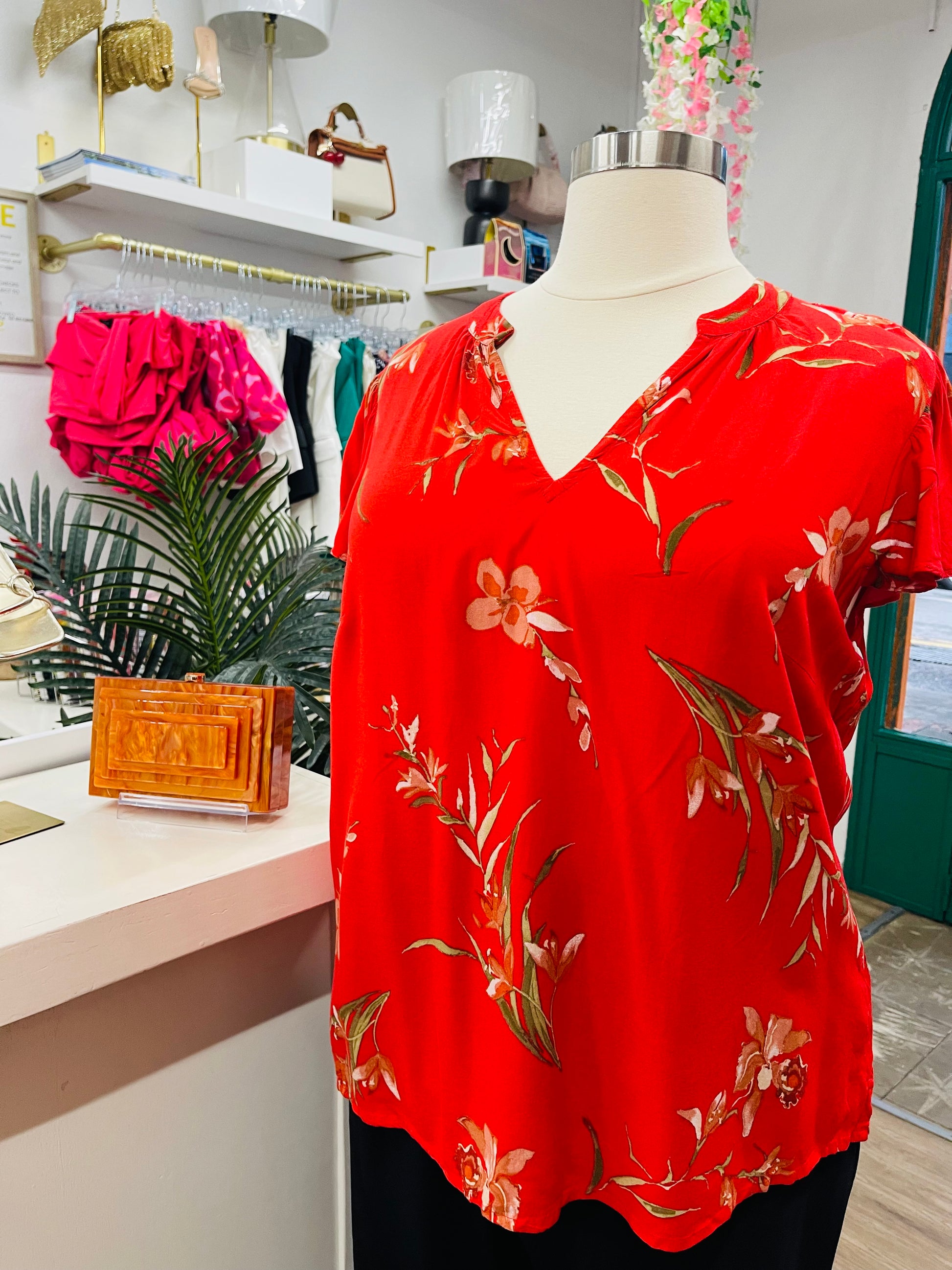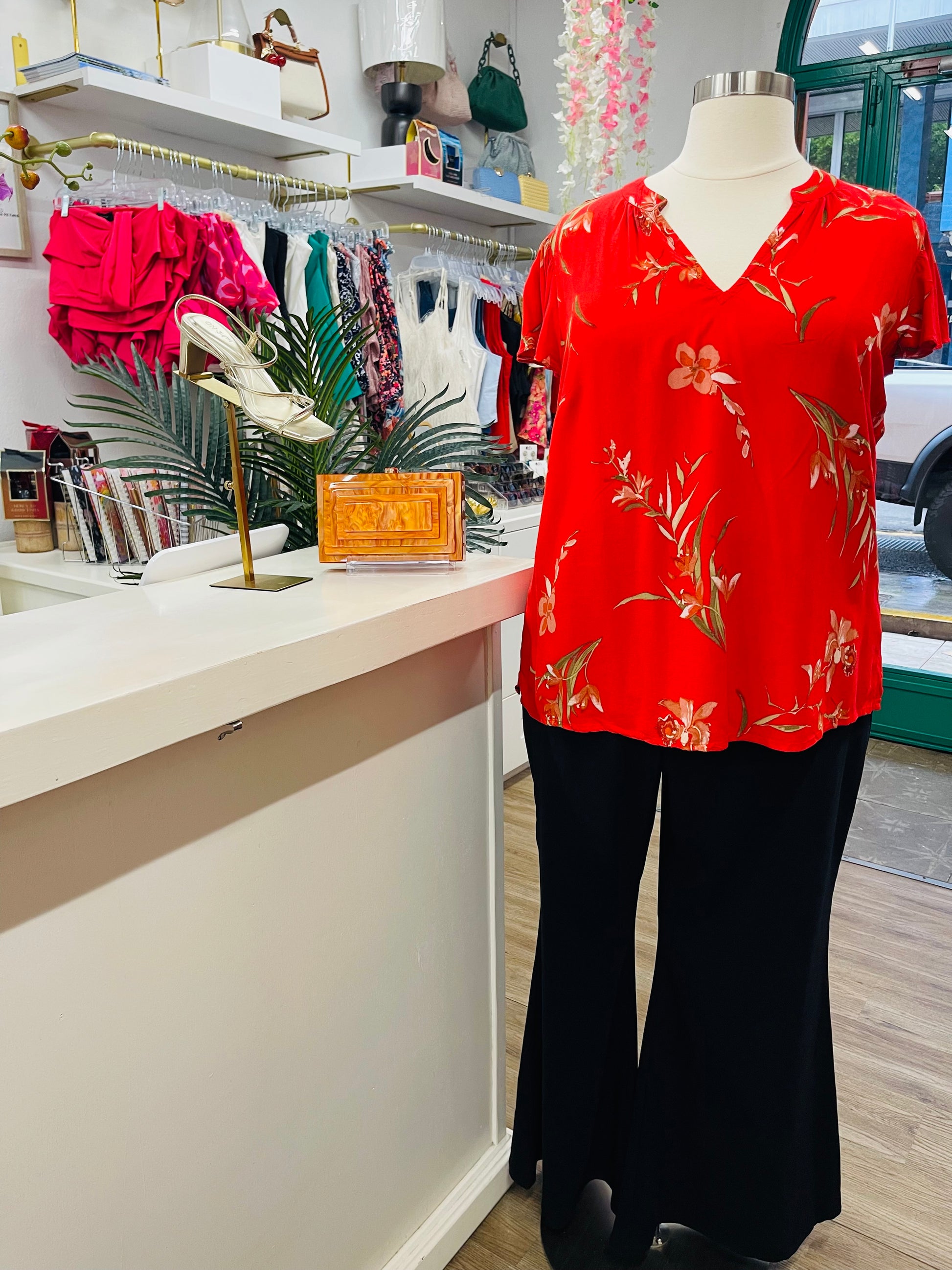 Elevate your wardrobe with the Cece Plus Flutter Top, featuring delicate red flutter sleeves that add a touch of femininity and movement. This short-sleeve design is perfect for staying comfortable and stylish during warm days or layering effortlessly. Its vibrant red print makes a bold statement, ensuring you stand out with every wear. Crafted for a flattering plus-size fit, this top combines charm and comfort to bring confidence to your everyday look.