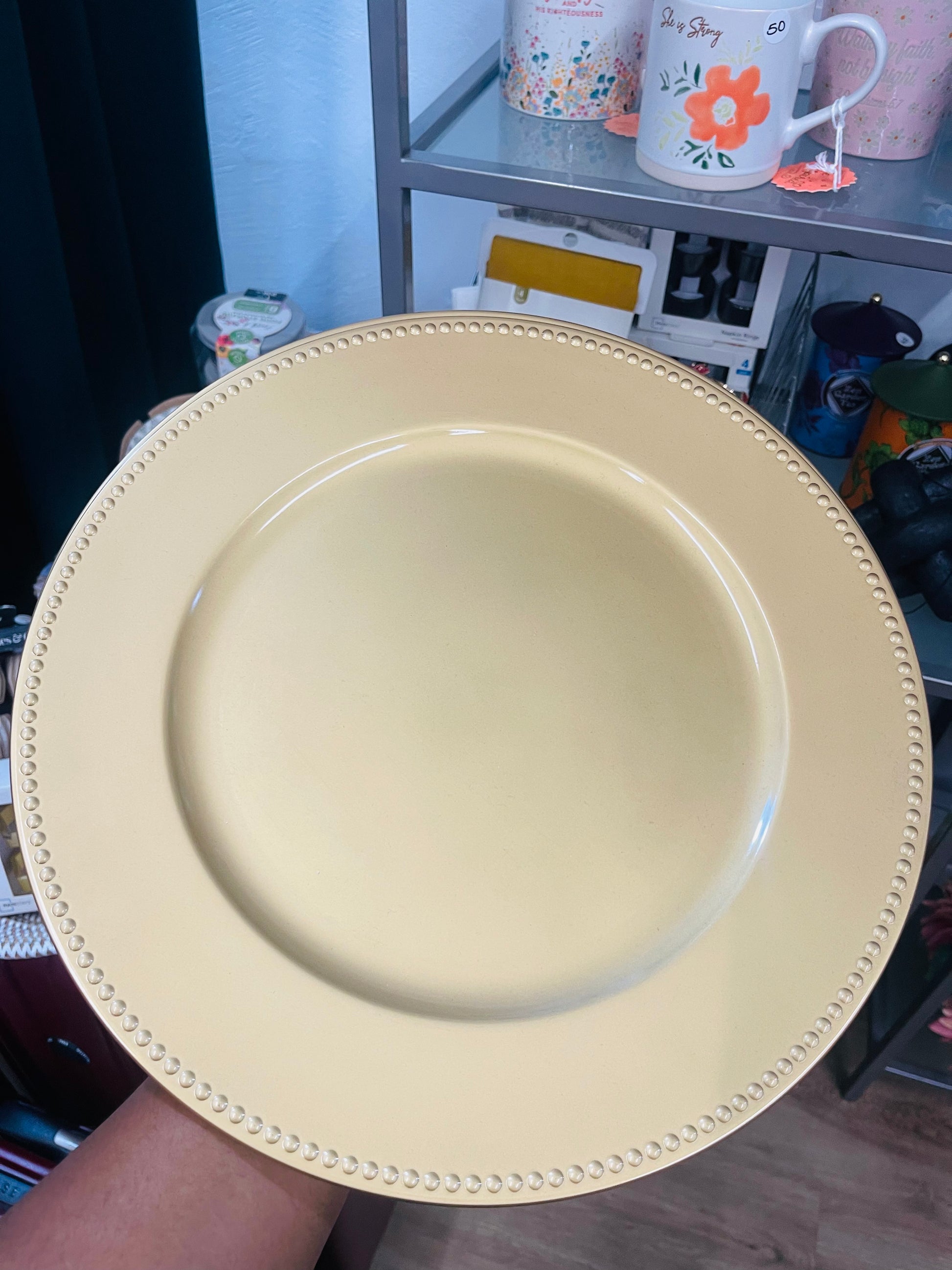 Elevate your dining experience with our Charger Plates! Impress your guests by adding a touch of elegance to your table setting. These decorative plates will elevate any occasion and make your meals feel truly special. A must-have for any host looking to make a lasting impression.