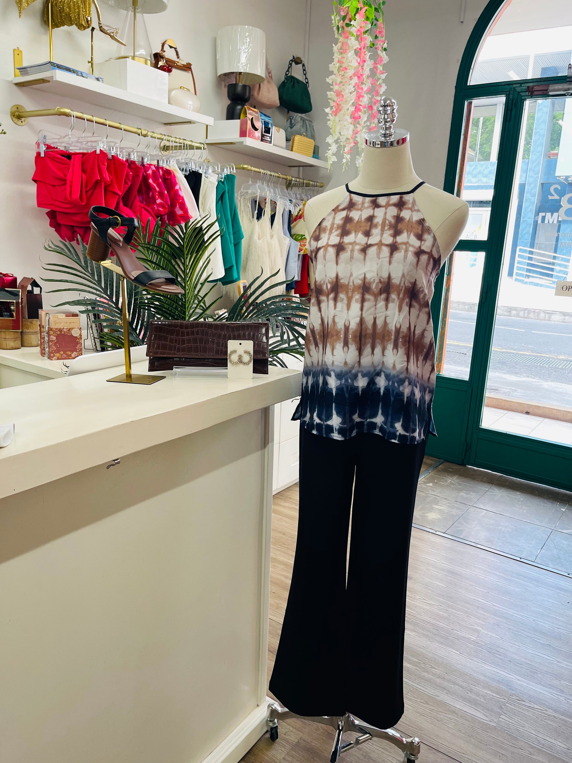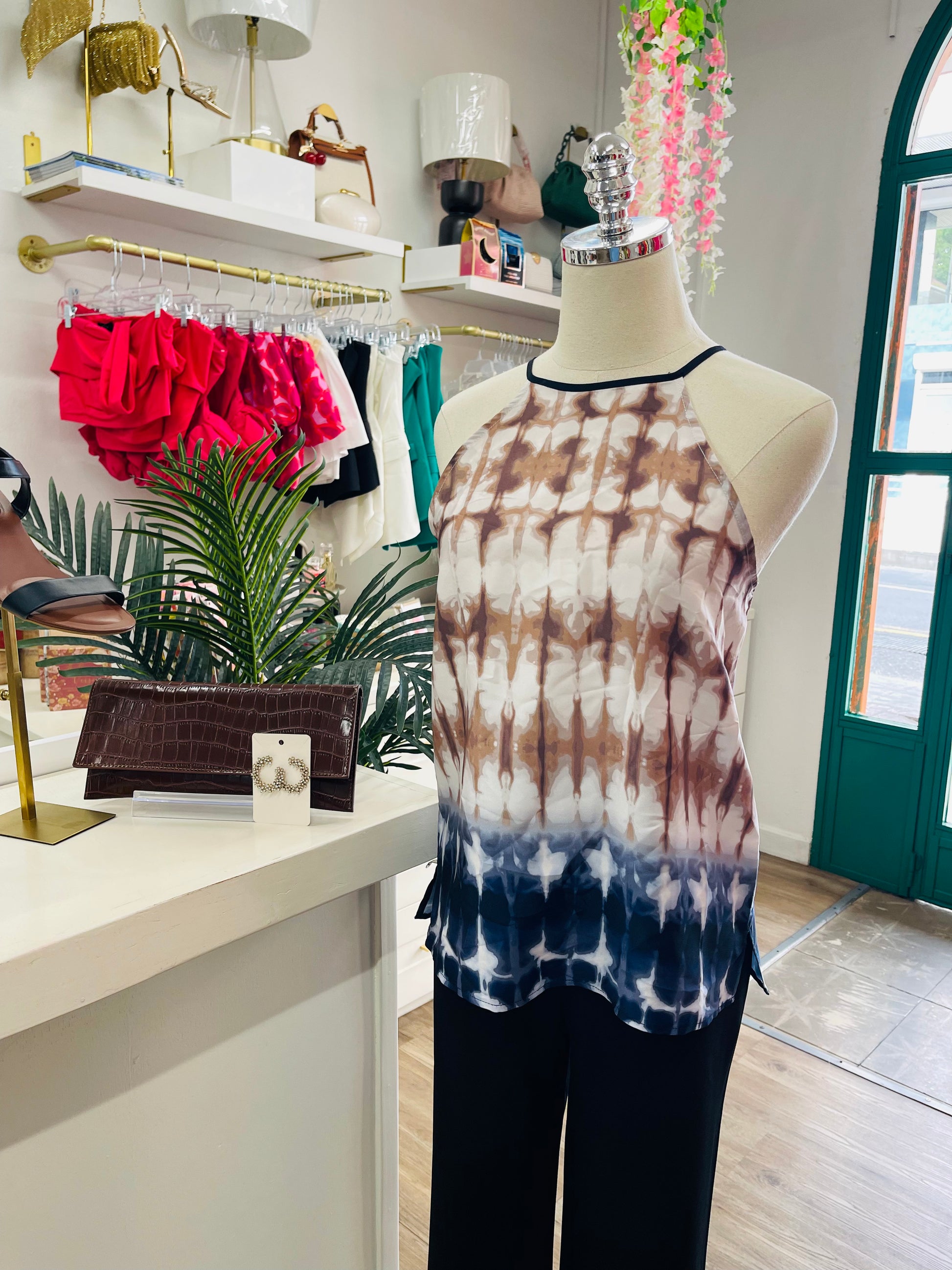 Turn heads effortlessly in the DKNY Printed Halter, a vibrant blend of playful patterns and flattering design. This sultry piece highlights your neckline while offering a comfortable fit perfect for day-to-night wear. Embrace your confident, fun side with this versatile halter that pairs seamlessly with your favorite bottoms for a look that’s both flirty and fashionable.