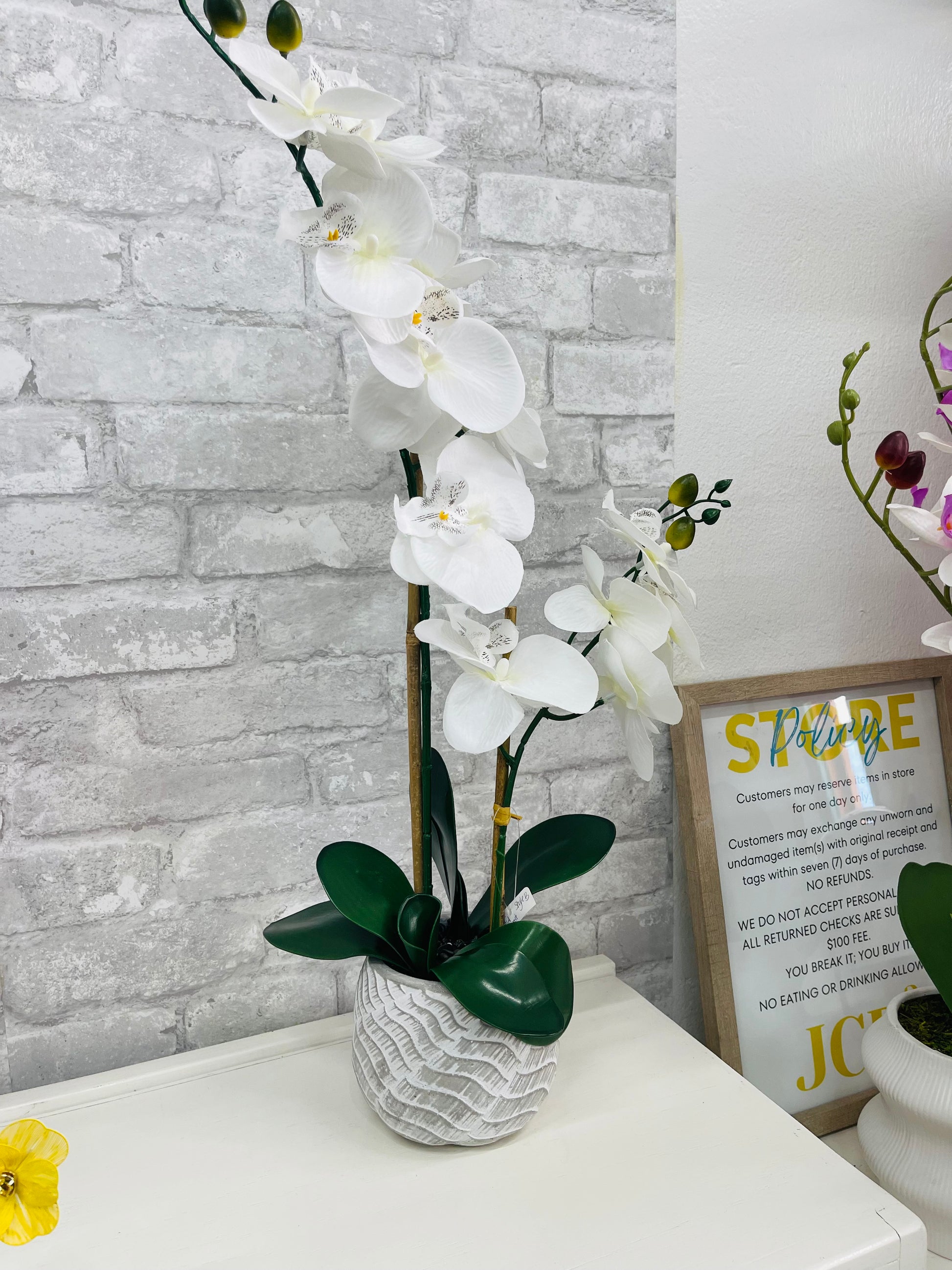 These faux orchid arrangement comes with a unique stone vase that adds an elegant touch to any room. The high-quality materials make it indistinguishable from real orchids, providing long-lasting beauty without the hassle of maintenance. A perfect addition to your home or office decor.