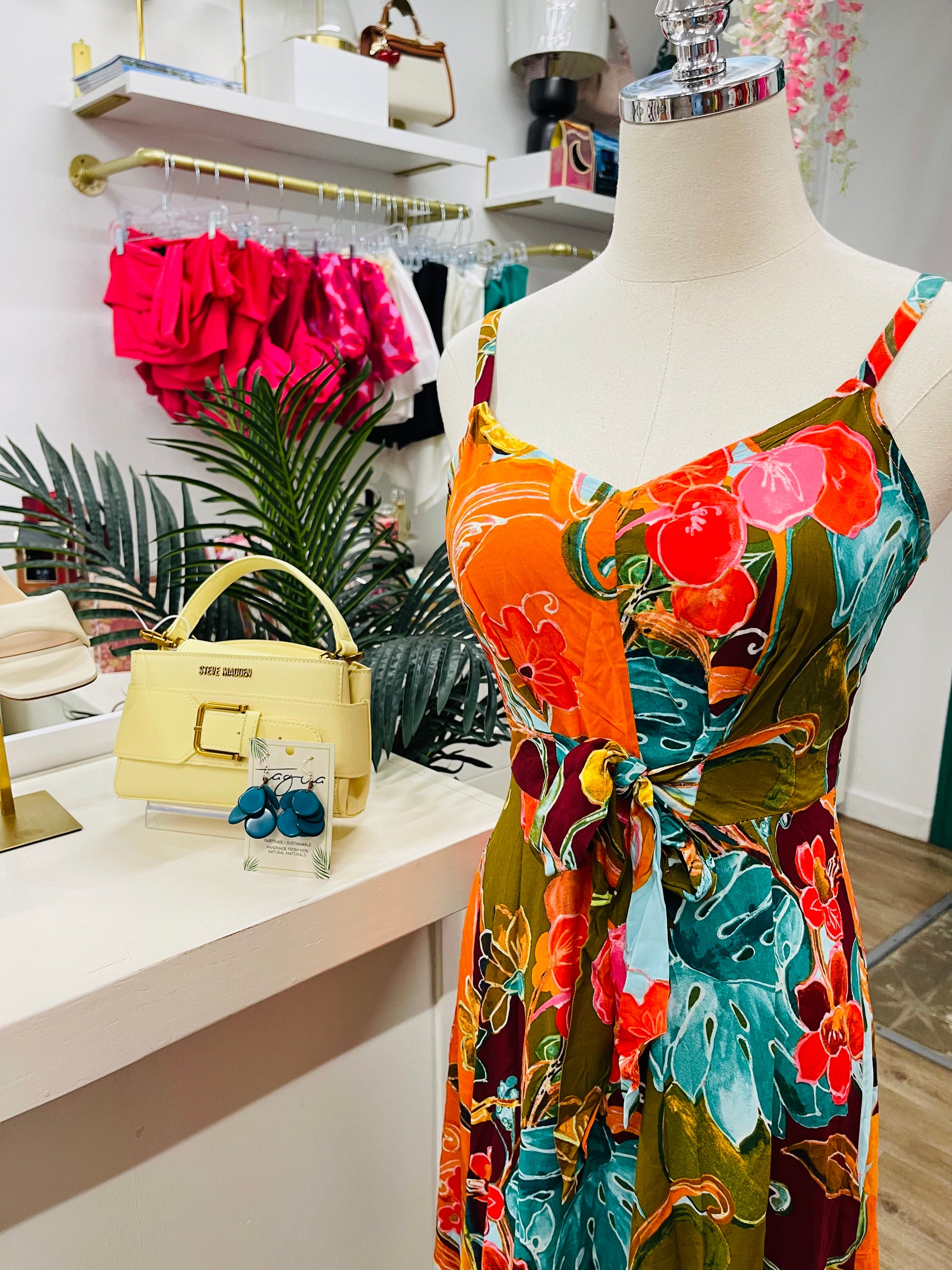 Embrace vibrant tropical vibes with the MSK Gina Tie Midi Dress. Its flattering tie-front design accentuates your waist while the breezy fabric keeps you cool and comfortable. Perfect for sunny days or casual evenings, this dress brings effortless style and a fresh, island-inspired look to your wardrobe.