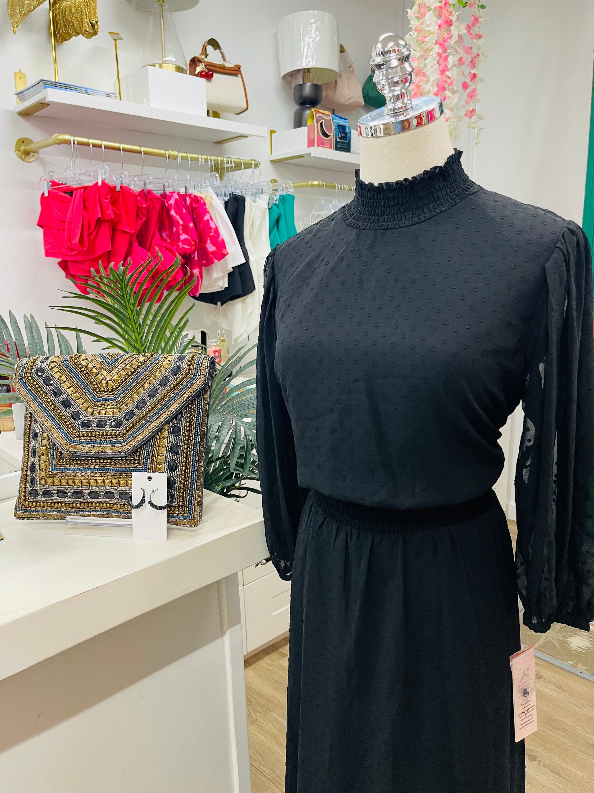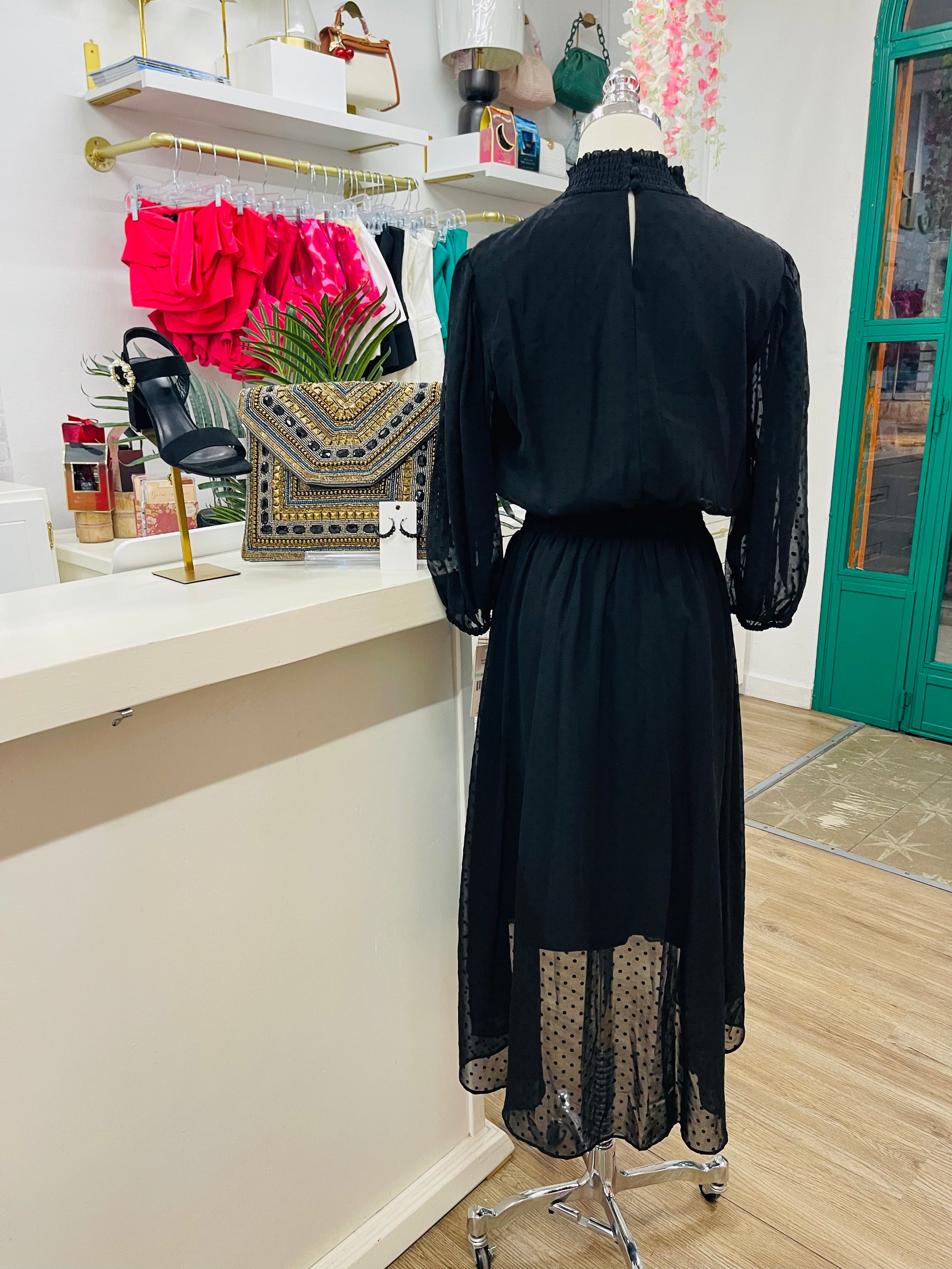 Experience effortless elegance with the Nanette Jessica Swiss Dot Dress. Featuring a flowy silhouette and a stylish high neck, this dress offers both comfort and sophistication. The delicate Swiss dot pattern adds a subtle texture, making it perfect for special occasions or a chic day out. Elevate your wardrobe with a dress that moves gracefully while keeping you looking polished.