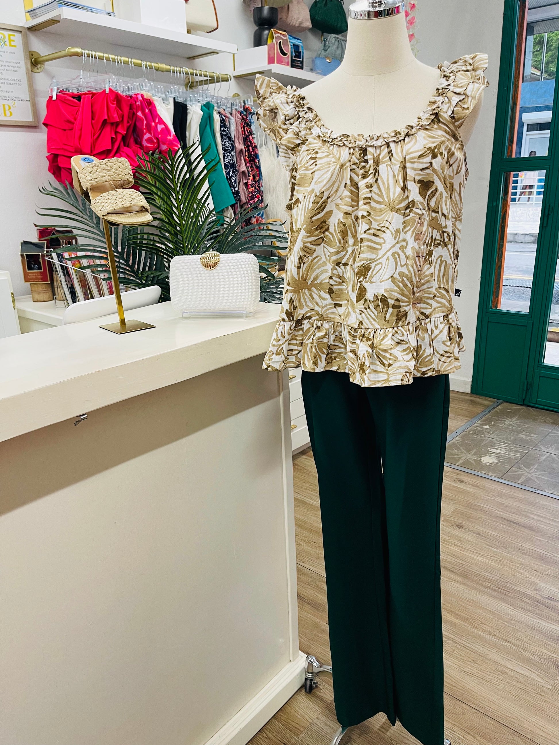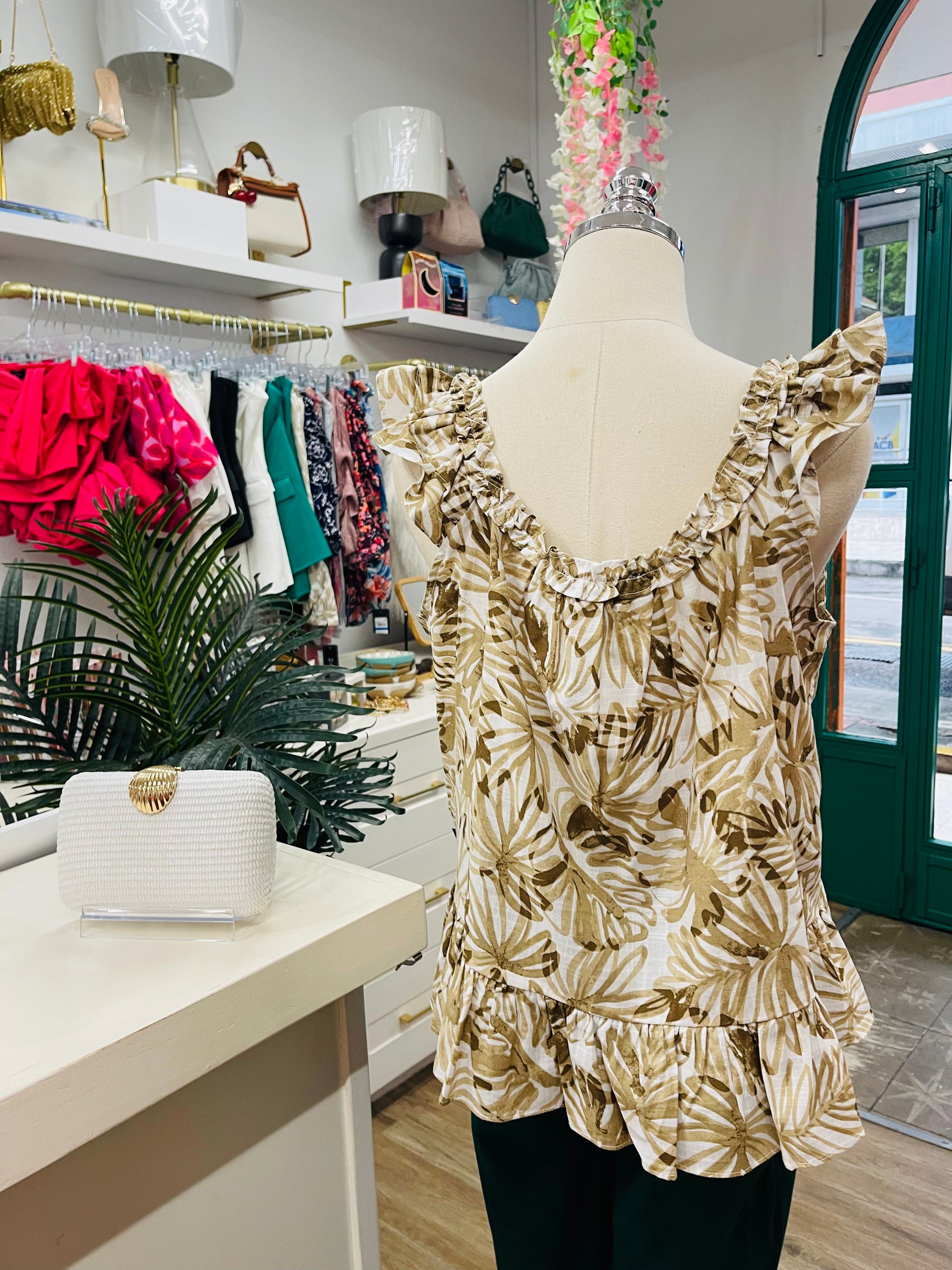 Embrace effortless island style with the NJ Hawaii Top. Its relaxed fit ensures comfort all day, while the playful ruffle sleeves add a touch of tropical charm. Perfect for warm weather, this top blends breezy ease with vibrant flair to elevate your casual wardrobe.