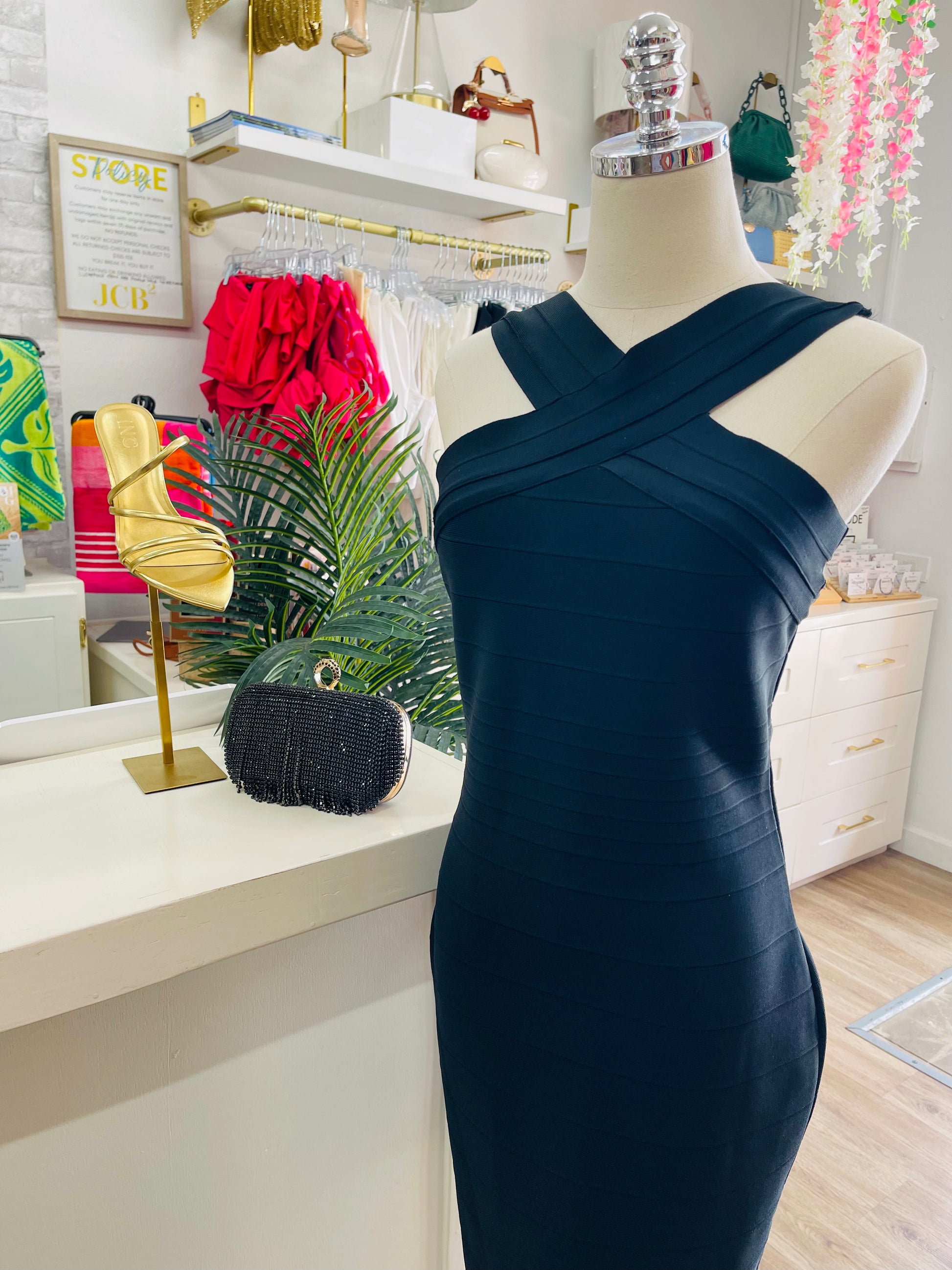 The Siene Bandage Mini Dress delivers bold, body-confident style that turns heads. Crafted from premium stretch fabric, this figure-hugging design features signature bandage detailing that flatters your silhouette while offering comfortable all-day wear. Perfect for nights out, parties, or whenever you want to make a statement. The mini length showcases your legs while the sleek construction ensures you'll feel as amazing as you look. Elevate your wardrobe with this timeless piece that works from cocktail hour to late-night celebrations.