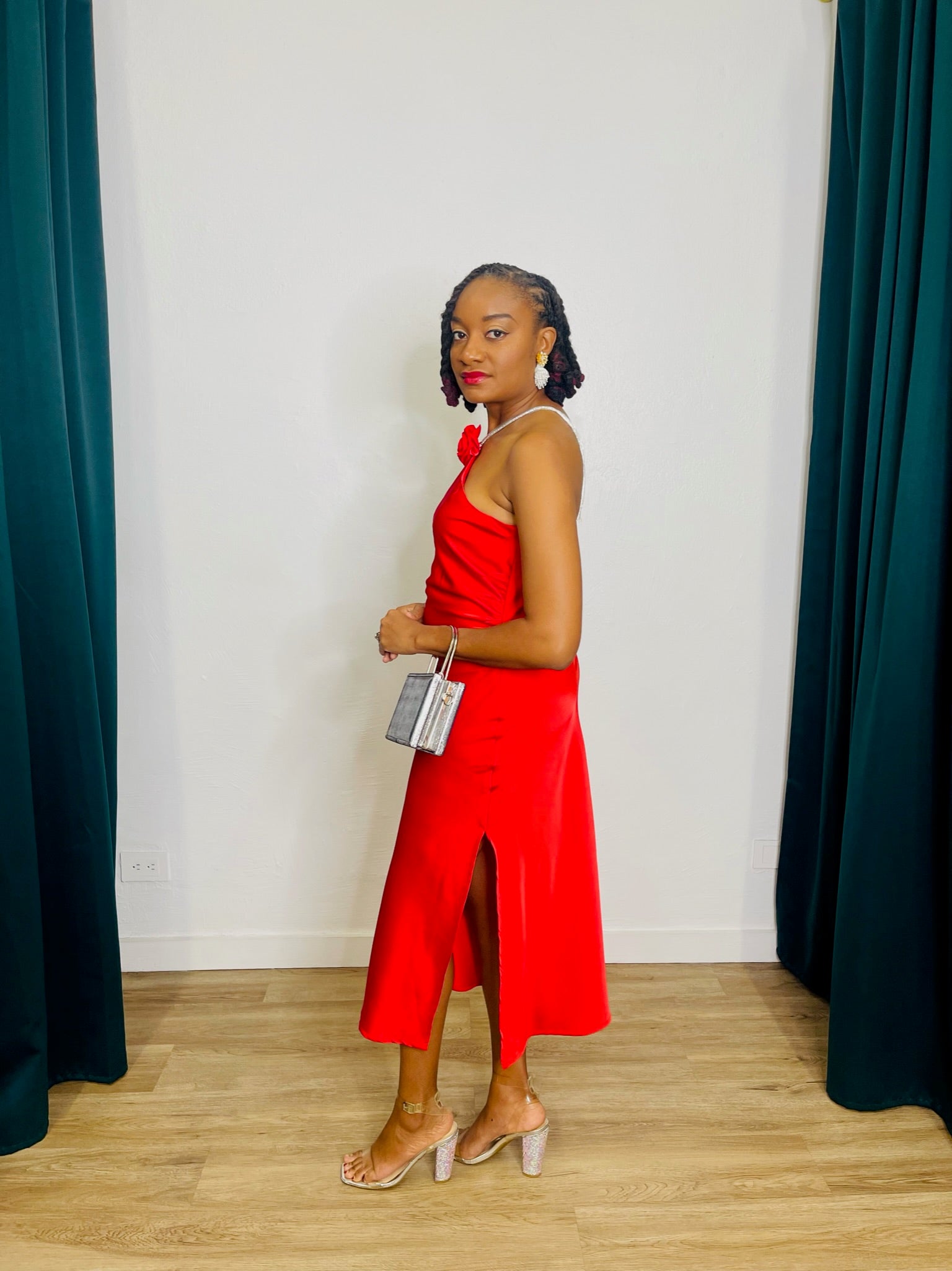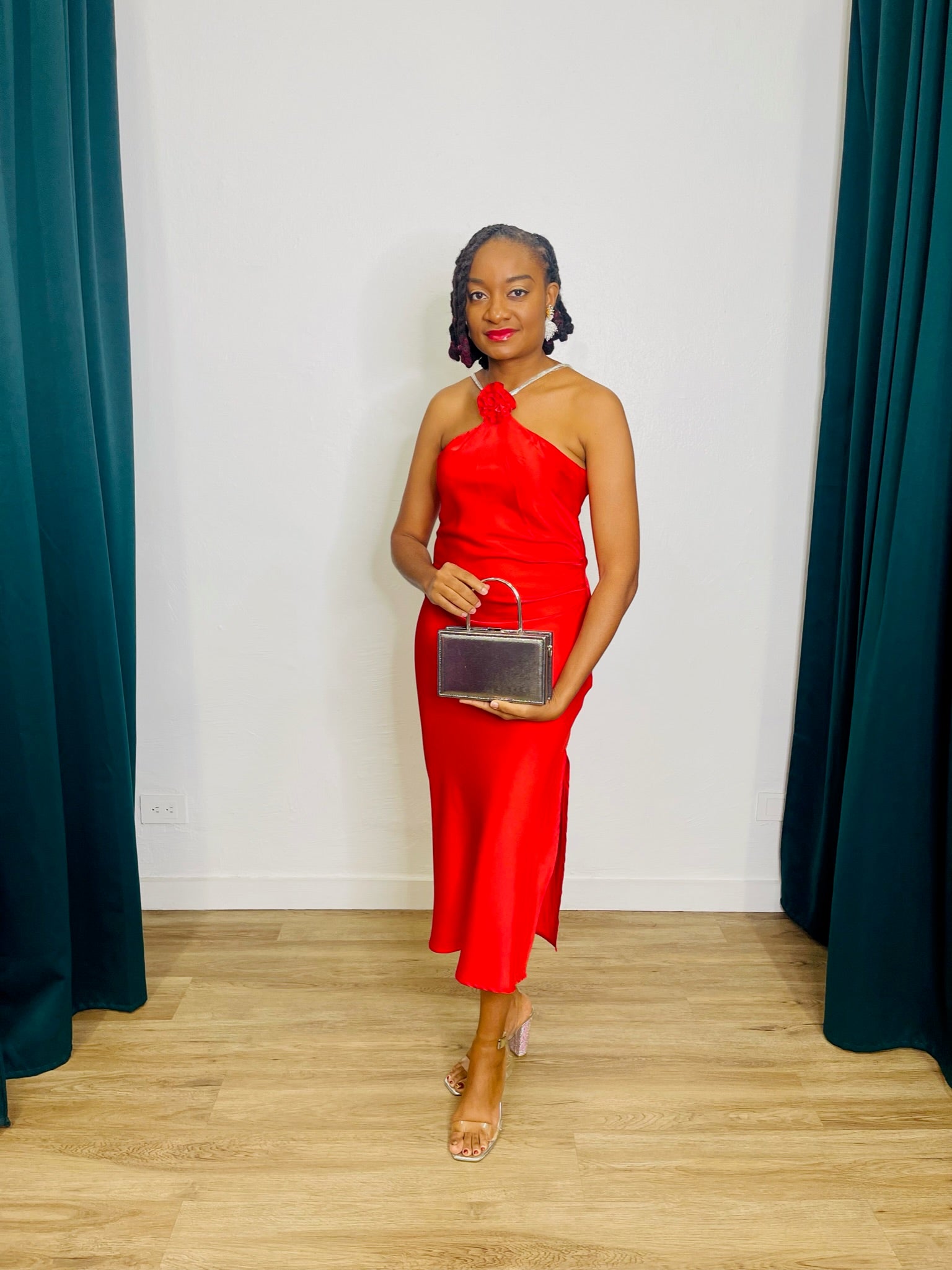 Crafted with a delicate rosette design and a halter neckline, the Skies Are Blue Rosette Halter Dress exudes elegance and sophistication. Made with high-quality materials, this dress offers a comfortable and stylish fit for any special occasion. Elevate your wardrobe with this stunning and versatile piece.